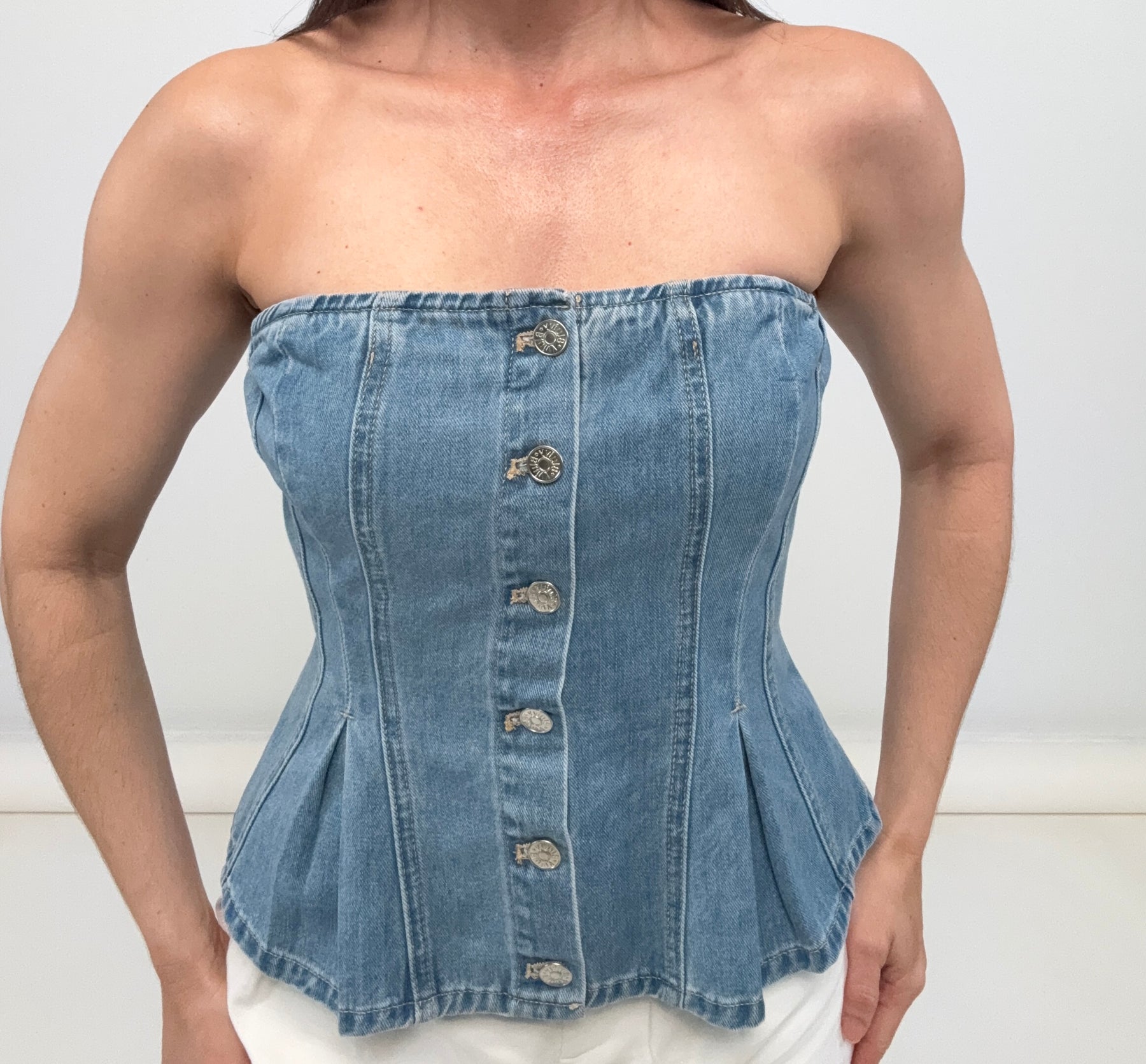 • Strapless Denim Corset Top